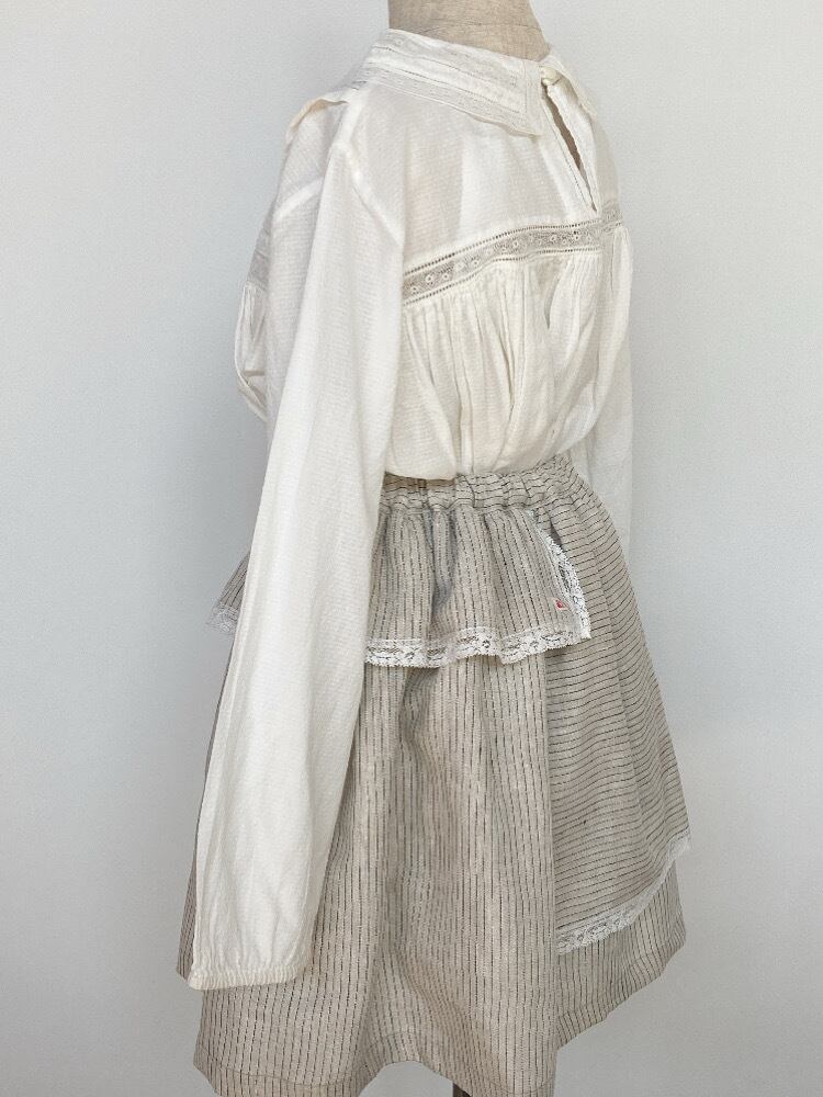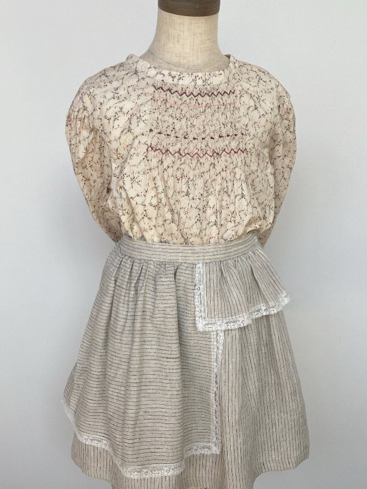 フランスの上質なレースをあしらった2段仕立てのスカートになります。(ペチコートはオプションで別売りになります。)