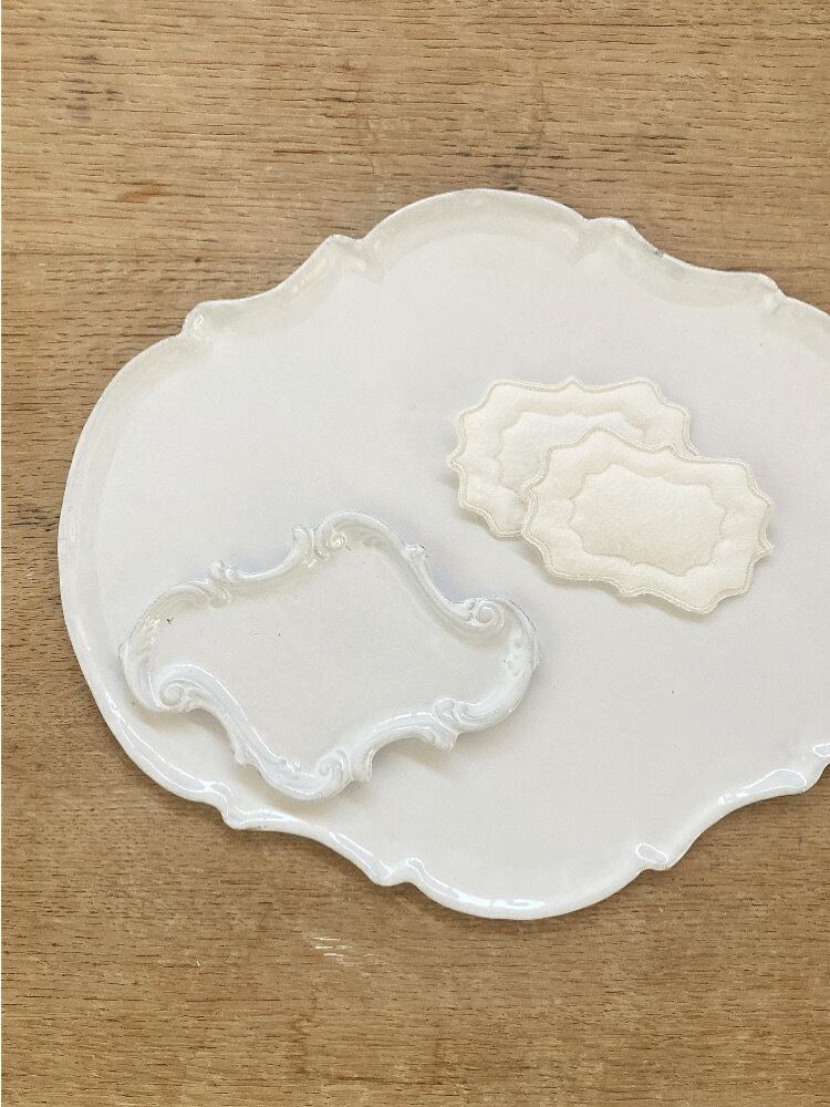 ホワイトコットンリネンの生地にアンティーク図案を刺繍してコースターに仕立てました。